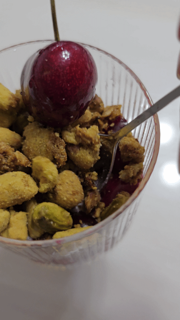 묵직한 요거트 위에 바삭한 곡물과 견과류가 올라가니까 질감이 훨씬 다양해지고, 씹는 재미도 생기더라고요.