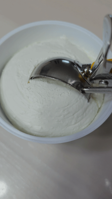 뚜껑을 열고 아이스크림 스쿱을 넣는 순간, 질감에서 먼저 느껴지는 건 '꾸덕한 밀도감'이었습니다.