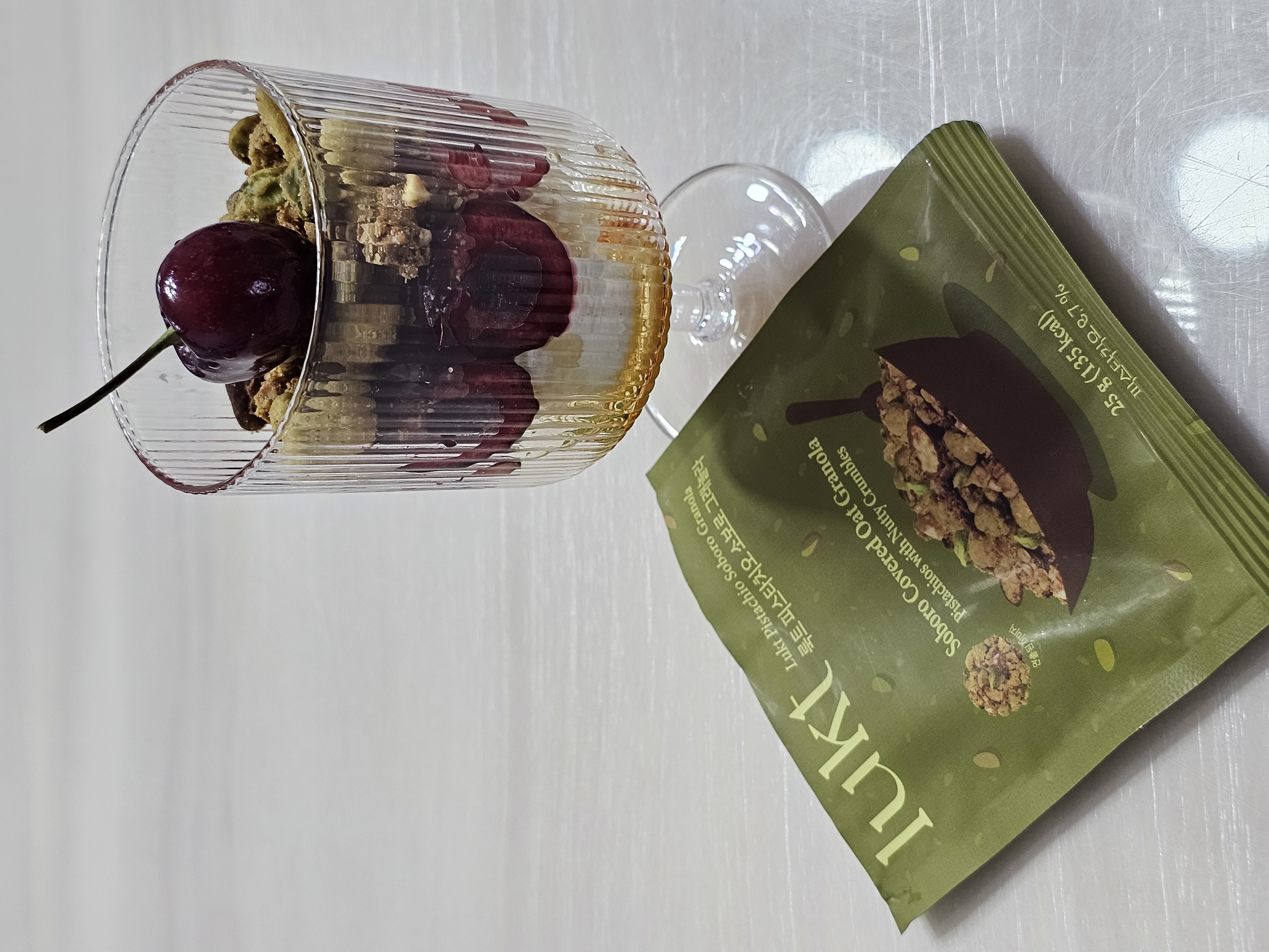 두번째로는 피스타치오 소보로 그래놀라와 함께 했는데 견과류 보이시죠? 진짜 너무 맛있게 한끼로 먹었습니다.